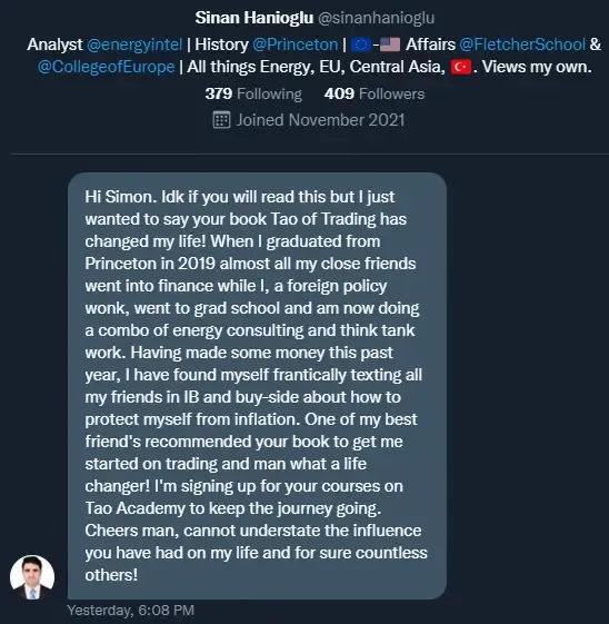 Whether you’re just getting started or looking for a more sustainable way to grow your money, The Tao of Trading is your gateway to learning from someone who truly walks the talk.